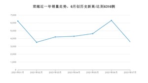 2021年7月,君越销量为3577辆,同比下降7.12%,环比下降43.37%。1-7月份,君越销量为32766辆,同比增长42.18%。在最近1年中,君越销量在2021年06月达到最高,销量为6316辆。