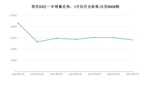 2021年7月,领克03销量为5622辆,同比增长13.97%,环比下降6.87%。1-7月份,领克03销量为43290辆,同比增长23.65%。在最近1年中,领克03销量在2021年01月达到最高,销量为8608辆。