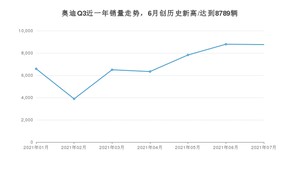 2021年7月,奥迪Q3销量为8756辆,同比增长64.96%,环比下降0.38%。1-7月份,奥迪Q3销量为48661辆,同比增长31.25%。在最近1年中,奥迪Q3销量在2021年06月达到最高,销量为8789辆。
