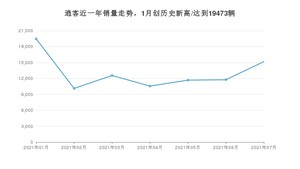 2021年7月,逍客销量为15171辆,同比增长23.83%,环比增长28.99%。1-7月份,逍客销量为91334辆,同比增长28.28%。在最近1年中,逍客销量在2021年01月达到最高,销量为19473辆。