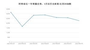 2021年7月,阿特兹销量为2265辆,同比增长9.63%,环比下降12.35%。1-7月份,阿特兹销量为17996辆,同比下降7.32%。在最近1年中,阿特兹销量在2021年01月达到最高,销量为3156辆。