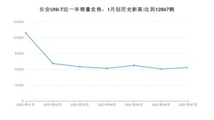 2021年7月,长安UNI-T销量为6328辆,同比下降23.8%,环比增长4.51%。1-7月份,长安UNI-T销量为51698辆,同比增长231.63%。在最近1年中,长安UNI-T销量在2021年01月达到最高,销量为12847辆。