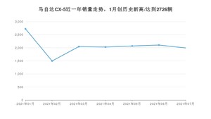 2021年7月,马自达CX-5销量为1994辆,同比下降32.08%,环比下降5.23%。1-7月份,马自达CX-5销量为14462辆,同比下降19.69%。在最近1年中,马自达CX-5销量在2021年01月达到最高,销量为2726辆。