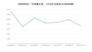2021年7月,INSPIRE销量为3604辆,同比下降3.33%,环比下降26.54%。1-7月份,INSPIRE销量为32328辆,同比增长58.16%。在最近1年中,INSPIRE销量在2021年01月达到最高,销量为6502辆。