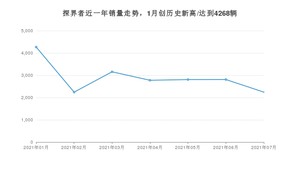 2021年7月,探界者销量为2244辆,同比下降26.4%,环比下降20.11%。1-7月份,探界者销量为20303辆,同比增长5.77%。在最近1年中,探界者销量在2021年01月达到最高,销量为4268辆。