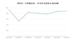 2021年7月,辉昂销量为888辆,同比增长30.59%,环比增长1.14%。1-7月份,辉昂销量为5650辆,同比增长29.89%。在最近1年中,辉昂销量在2021年01月达到最高,销量为923辆。