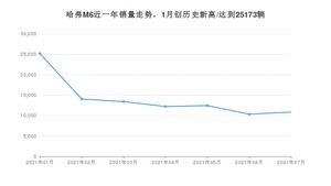 2021年7月,哈弗M6销量为10845辆,同比下降0.9%,环比增长4.91%。1-7月份,哈弗M6销量为98460辆,同比增长31%。在最近1年中,哈弗M6销量在2021年01月达到最高,销量为25173辆。