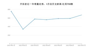 2021年7月,开拓者销量为673辆,同比增长97.94%,环比增长14.07%。1-7月份,开拓者销量为4080辆,同比增长143.87%。在最近1年中,开拓者销量在2021年01月达到最高,销量为755辆。