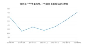 2021年7月,发现销量为720辆,同比增长93.55%,环比增长36.62%。1-7月份,发现销量为3047辆,同比下降1.61%。在最近1年中,发现销量在2021年07月达到最高,销量为720辆。