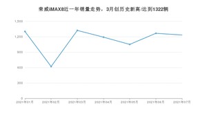 2021年7月,荣威iMAX8销量为1233辆,环比下降2.61%。1-7月份,荣威iMAX8销量为7984辆,在最近1年中,荣威iMAX8销量在2021年03月达到最高,销量为1322辆。