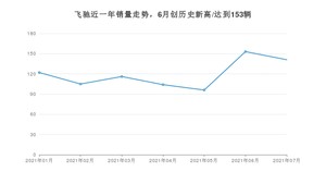 2021年7月,飞驰销量为141辆,同比增长281.08%,环比下降7.84%。1-7月份,飞驰销量为837辆,同比增长174.43%。在最近1年中,飞驰销量在2021年06月达到最高,销量为153辆。