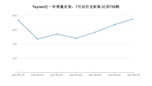 2021年7月,Taycan销量为755辆,同比增长2%,环比增长12.35%。1-7月份,Taycan销量为4218辆,同比增长2%。在最近1年中,Taycan销量在2021年07月达到最高,销量为755辆。