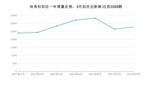 2021年7月,哈弗初恋销量为2779辆,环比增长5.15%。1-7月份,哈弗初恋销量为19645辆,在最近1年中,哈弗初恋销量在2021年05月达到最高,销量为3326辆。