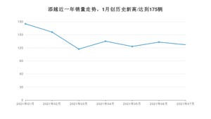 2021年7月,添越销量为127辆,同比增长71.62%,环比下降4.51%。1-7月份,添越销量为966辆,同比增长22.9%。在最近1年中,添越销量在2021年01月达到最高,销量为175辆。