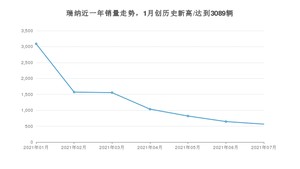 2021年7月,瑞纳销量为565辆,同比下降82.16%,环比下降12.54%。1-7月份,瑞纳销量为9283辆,同比下降50.41%。在最近1年中,瑞纳销量在2021年01月达到最高,销量为3089辆。