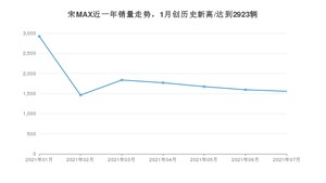2021年7月,宋MAX销量为1556辆,同比下降23.87%,环比下降2.45%。1-7月份,宋MAX销量为12815辆,同比下降8.87%。在最近1年中,宋MAX销量在2021年01月达到最高,销量为2923辆。