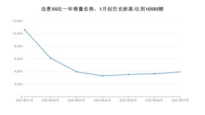 2021年7月,远景X6销量为3924辆,同比下降38.85%,环比增长7.86%。1-7月份,远景X6销量为35016辆,同比下降19.06%。在最近1年中,远景X6销量在2021年01月达到最高,销量为10585辆。