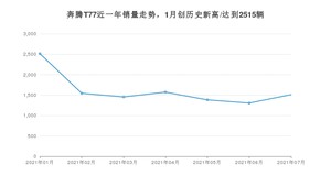 2021年7月,奔腾T77销量为1512辆,同比下降35.96%,环比增长15.95%。1-7月份,奔腾T77销量为11286辆,同比下降21.82%。在最近1年中,奔腾T77销量在2021年01月达到最高,销量为2515辆。