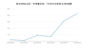2021年7月,高合HiPhi X销量为428辆,环比增长35.44%。1-7月份,高合HiPhi X销量为941辆,在最近1年中,高合HiPhi X销量在2021年07月达到最高,销量为428辆。
