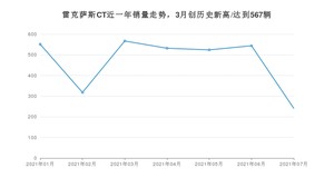 2021年7月,雷克萨斯CT销量为241辆,同比下降50.51%,环比下降55.7%。1-7月份,雷克萨斯CT销量为3277辆,同比增长21.96%。在最近1年中,雷克萨斯CT销量在2021年03月达到最高,销量为567辆。