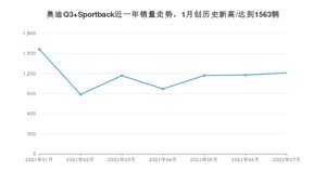 2021年7月,奥迪Q3 Sportback销量为1209辆,同比增长127.26%,环比增长2.81%。1-7月份,奥迪Q3 Sportback销量为8143辆,同比增长462.36%。在最近1年中,奥迪Q3 Sportback销量在2021年01月达到最高,销量为1563辆。