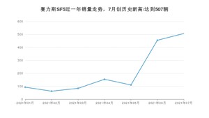 2021年7月,赛力斯SF5销量为507辆,同比增长704.76%,环比增长11.43%。1-7月份,赛力斯SF5销量为1465辆,同比增长434.67%。在最近1年中,赛力斯SF5销量在2021年07月达到最高,销量为507辆。
