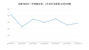 2021年7月,讴歌CDX销量为286辆,同比下降35.59%,环比增长10.42%。1-7月份,讴歌CDX销量为2193辆,同比下降28.66%。在最近1年中,讴歌CDX销量在2021年01月达到最高,销量为419辆。
