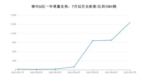 2021年7月,哪吒U销量为1561辆,同比增长92.48%,环比增长60.27%。1-7月份,哪吒U销量为3646辆,同比增长114.85%。在最近1年中,哪吒U销量在2021年07月达到最高,销量为1561辆。