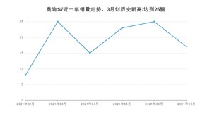 2021年7月,奥迪S7销量为17辆,环比下降32%。1-7月份,奥迪S7销量为113辆,同比增长11%。在最近1年中,奥迪S7销量在2021年03月达到最高,销量为25辆。