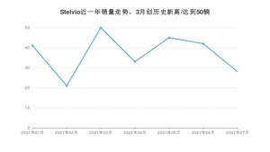 2021年7月,Stelvio销量为28辆,同比下降44%,环比下降33.33%。1-7月份,Stelvio销量为260辆,同比下降17.46%。在最近1年中,Stelvio销量在2021年03月达到最高,销量为50辆。