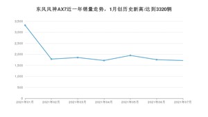2021年7月,东风风神AX7销量为1718辆,同比增长9.5%,环比下降2.28%。1-7月份,东风风神AX7销量为14106辆,同比增长23.92%。在最近1年中,东风风神AX7销量在2021年01月达到最高,销量为3320辆。