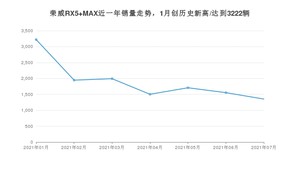 2021年7月,荣威RX5 MAX销量为1353辆,同比下降62.99%,环比下降12.93%。1-7月份,荣威RX5 MAX销量为13280辆,同比下降55.22%。在最近1年中,荣威RX5 MAX销量在2021年01月达到最高,销量为3222辆。