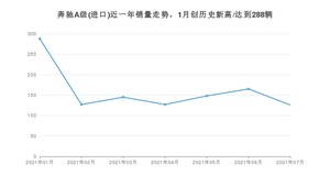 2021年7月,奔驰A级(进口)销量为126辆,同比下降60.87%,环比下降23.64%。1-7月份,奔驰A级(进口)销量为1126辆,同比下降58.88%。在最近1年中,奔驰A级(进口)销量在2021年01月达到最高,销量为288辆。