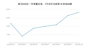 2021年7月,威马EX5销量为3644辆,同比增长183.8%,环比增长12.26%。1-7月份,威马EX5销量为15843辆,同比增长138.53%。在最近1年中,威马EX5销量在2021年07月达到最高,销量为3644辆。