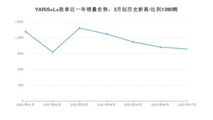 2021年7月,YARiS L 致享销量为983辆,同比下降64.89%,环比下降3.72%。1-7月份,YARiS L 致享销量为8008辆,同比下降53.11%。在最近1年中,YARiS L 致享销量在2021年03月达到最高,销量为1380辆。
