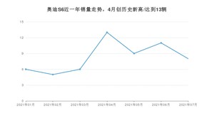 2021年7月,奥迪S6销量为8辆,环比下降27.27%。1-7月份,奥迪S6销量为58辆,同比增长5%。在最近1年中,奥迪S6销量在2021年04月达到最高,销量为13辆。