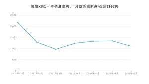 2021年7月,思皓X8销量为1104辆,环比下降17.86%。1-7月份,思皓X8销量为9431辆,在最近1年中,思皓X8销量在2021年01月达到最高,销量为2166辆。