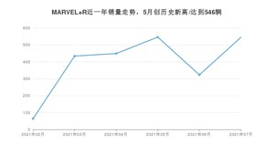 2021年7月,MARVEL R销量为545辆,环比增长68.73%。1-7月份,MARVEL R销量为2361辆,在最近1年中,MARVEL R销量在2021年05月达到最高,销量为546辆。