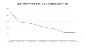 2021年7月,宝骏360销量为374辆,同比下降75.31%,环比持平。1-7月份,宝骏360销量为4917辆,同比下降65.83%。在最近1年中,宝骏360销量在2021年01月达到最高,销量为1312辆。