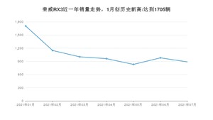 2021年7月,荣威RX3销量为888辆,同比下降18.9%,环比下降9.39%。1-7月份,荣威RX3销量为7517辆,同比下降33.88%。在最近1年中,荣威RX3销量在2021年01月达到最高,销量为1705辆。
