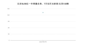 2021年7月,北京BJ30销量为132辆,1-7月份,北京BJ30销量为132辆,在最近1年中,北京BJ30销量在2021年07月达到最高,销量为132辆。
