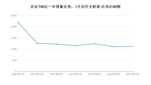 2021年7月,启辰T60销量为1118辆,同比下降15.05%,环比增长0.99%。1-7月份,启辰T60销量为9281辆,同比增长4.49%。在最近1年中,启辰T60销量在2021年01月达到最高,销量为2180辆。