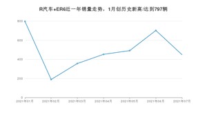 2021年7月,R汽车品牌总体销量达到993辆,其中R汽车 ER6销量达到448辆,占品牌总销量的45.12%。
