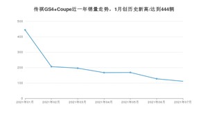 2021年7月,传祺GS4 Coupe销量为111辆,同比下降70.4%,环比下降12.6%。1-7月份,传祺GS4 Coupe销量为1419辆,同比增长28.18%。在最近1年中,传祺GS4 Coupe销量在2021年01月达到最高,销量为444辆。