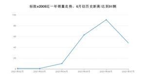 2021年7月,标致品牌总体销量达到2866辆,其中标致e2008销量达到48辆,占品牌总销量的1.67%。