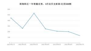 2021年7月,阁瑞斯销量为128辆,同比下降89.6%,环比下降36.32%。1-7月份,阁瑞斯销量为2020辆,同比下降71.72%。在最近1年中,阁瑞斯销量在2021年03月达到最高,销量为529辆。