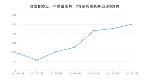 2021年7月,凌宝BOX销量为501辆,同比增长943.75%,环比增长10.11%。1-7月份,凌宝BOX销量为2151辆,同比增长2%。在最近1年中,凌宝BOX销量在2021年07月达到最高,销量为501辆。