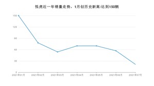 2021年7月,悦虎销量为21辆,同比下降72%,环比下降63.16%。1-7月份,悦虎销量为500辆,同比增长44.09%。在最近1年中,悦虎销量在2021年01月达到最高,销量为150辆。