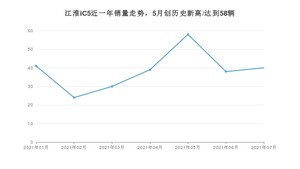 2021年7月,江淮iC5销量为40辆,同比下降23.08%,环比增长5.26%。1-7月份,江淮iC5销量为270辆,同比增长52.54%。在最近1年中,江淮iC5销量在2021年05月达到最高,销量为58辆。