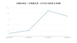 2021年7月,启腾EX80销量为7辆,同比持平,环比下降22.22%。1-7月份,启腾EX80销量为19辆,同比增长90%。在最近1年中,启腾EX80销量在2021年06月达到最高,销量为9辆。